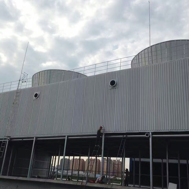 本系列方形逆流式冷卻塔采用逆流式氣熱交換技術,使冷空氣從冷卻塔底部進風,逆流往上進入填料層,實現熱交換帶著熱量。主體采用全鋼結構,玻璃鋼護板,塔體設檢修扶梯供塔頂設備的正常維護管理。采用S波紋填料,改性PVC材料,特殊構造的流水膜以擴散淋水面積;通過噴淋管道和噴頭散濺式的布水方式,實現布水均勻,加大散熱量,增強冷卻效果。